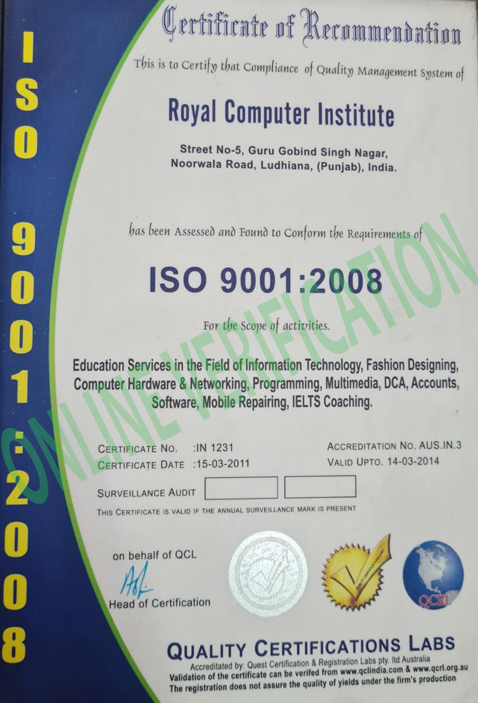 Certification Online Verification